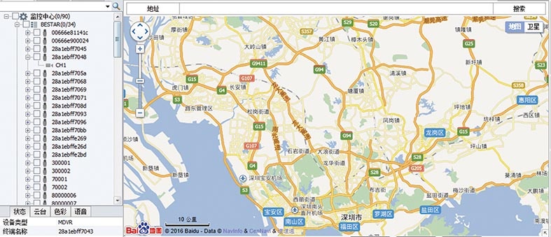 2. 實時全球定位:遠程音視頻監控指揮系統內置北斗/GPS定位系統模塊和天線,利用無線模塊將位置信息實時發送到監控中心,在平臺的電子地圖上顯示出設備的具體位置。并可以根據設備編號,按日期查詢歷史行動軌跡。