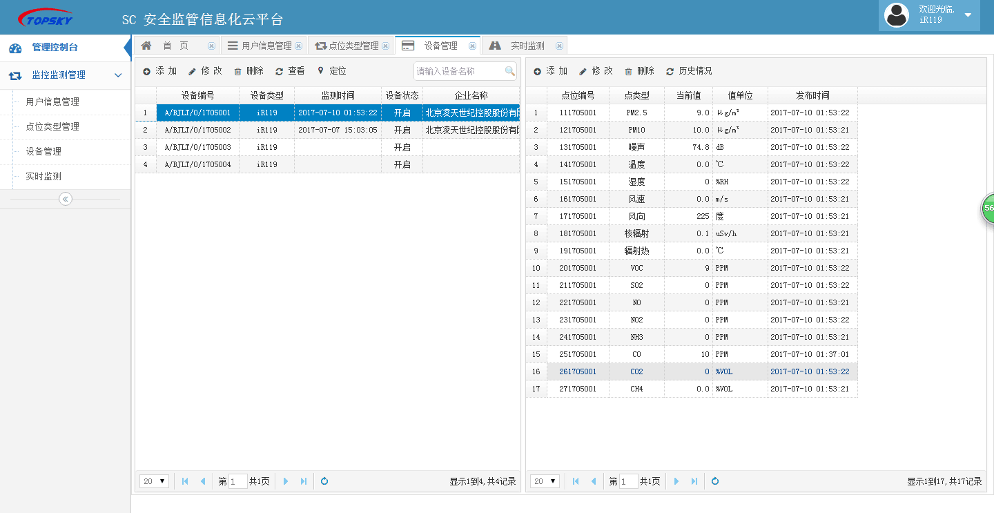 3. 實時無線氣體數據:通過部署前端一體化預警防控系統,可將現場所有檢測到的危化氣體數據,實時上傳遠程危險環境監測系統中,由系統統一管理,存儲,分析,打印形成報告。