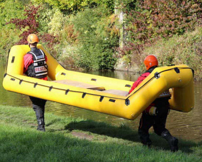 可折疊,底部堅硬耐磨,適合冰面、水面救援用。組裝操作簡單,使用方便。船體兩端為開放式設計,救援時,船身可越過被困人員頭部,救援人員無需