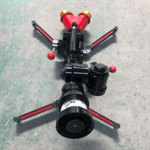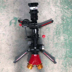 該炮可以手動控制與自擺轉換快速切換,射程遠,配有流量自動調節炮頭,當流量壓力較小時,仍能保持一定的噴射距離。體積小,移動方便,操作簡便,機動性強,非常適用于各類大中型石油化工生產基地、各類易燃易爆、有毒有害火災、各種大中型建筑的火場搶險救災。炮體采用輕質鋁合金材質,表面硬質陽極氧化后噴漆處理;炮腳鍛造鋁合金材質黑色氧化處理,4只支撐腳可折疊便于存放,拉開腳撐可定位作業,且腳撐拉開、折疊都有彈簧卡扣定位.防滑鎢鋼釘,腳撐上都裝有防滑鎢鋼釘,防止水炮在作業過程中滑動,配有直桿式開關,可快速開啟或關閉水流;