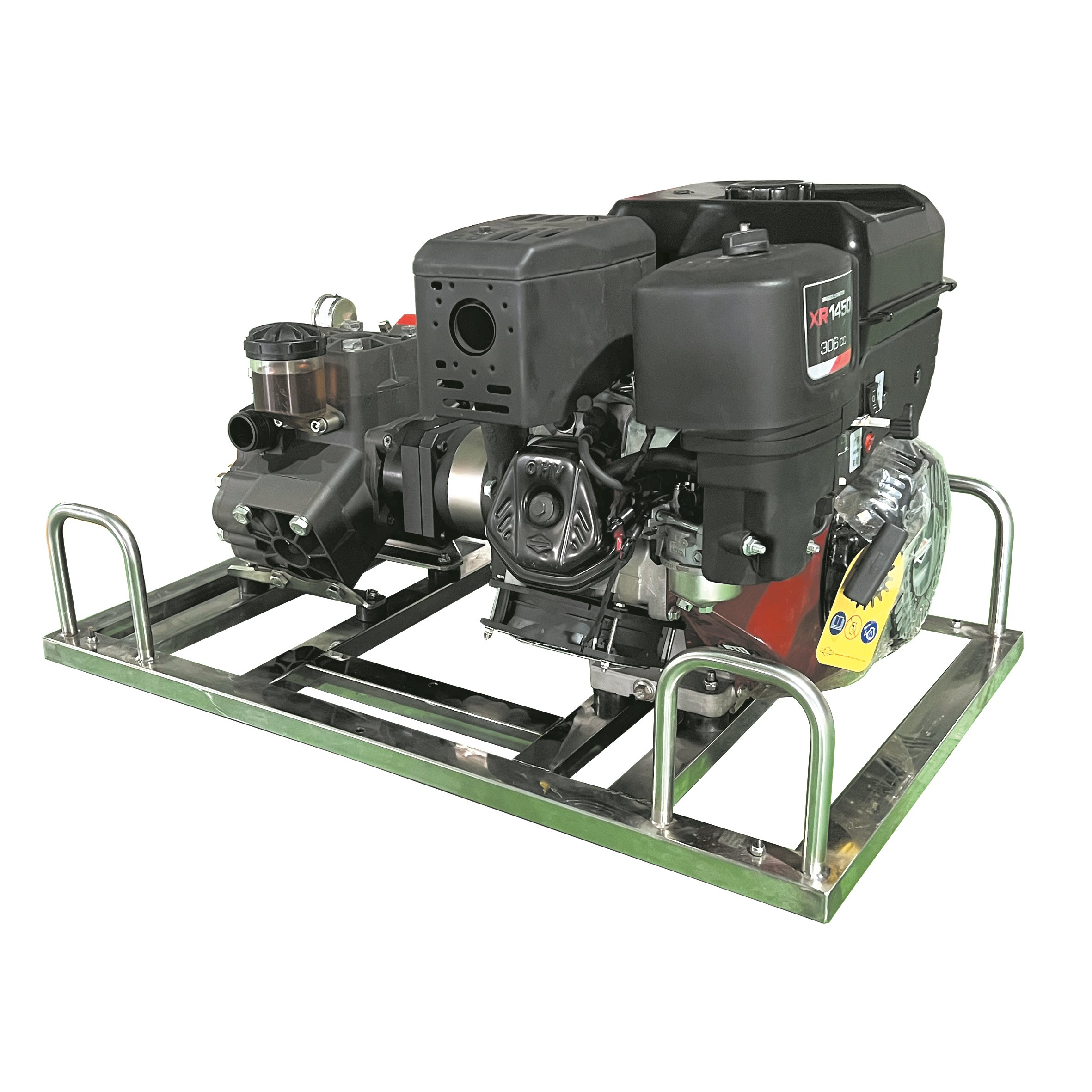 不銹鋼架,便于攜行。泵軸水平布置,減少震動。