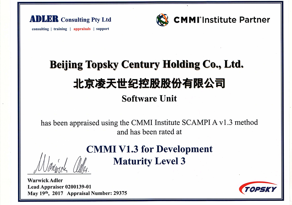CMMI認證的取得是北京凌天在高科技裝備發展的一次重要的里程碑,標志著凌天在軟件設計、開發、項目管理及為用戶提供高質量產品方面達到了國際化水平。