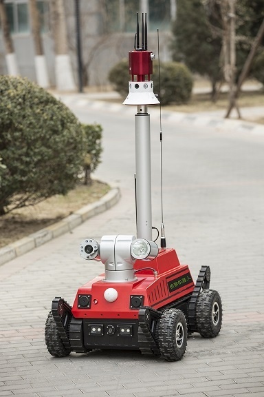 四輪全方位升降偵察機器人是一款集全方位視頻監控、可升降云臺、有毒有害氣體探測系統為一體的移動偵查平臺。體積小,有較強的攀爬和越障性能,可部署在狹小空間,威脅、危險區域執行隱秘偵察和監測任務。配裝的后場手持終端實時顯示移動端全景圖像,操作人員可以隱蔽觀察控制,通過手持端圖像或數據信息完成前端環境判斷,降低了在建筑物、地下室、山洞、隧道、街巷和可疑氣體泄漏區域內行動的危險性。