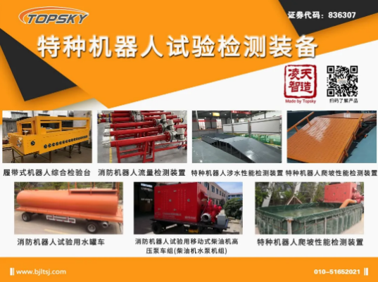 成熟可靠的裝備,離不開嚴格的產品檢驗,更離不開高性能的特種機器人試驗檢測裝備,在長期的研發實踐中,我們開發了一系列的特種機器人試驗檢測裝備,這些裝備可以用于機器人研發單位,檢測檢驗機構等。