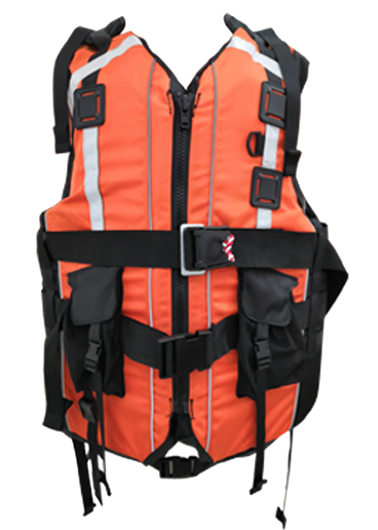 救生衣的面料采用方形針織壓力點(diǎn)和1680D材質(zhì)的Cordura?面料,使得救生衣足夠應(yīng)對復(fù)雜的水域活動。采用背心式設(shè)計(jì),胸襟采用YKK塑鋼開口拉鏈,并使用塑料拉頭浮力片固定于布料夾層內(nèi),后領(lǐng)口增加手提式松緊提拉帶設(shè)計(jì),方便于攜帶。