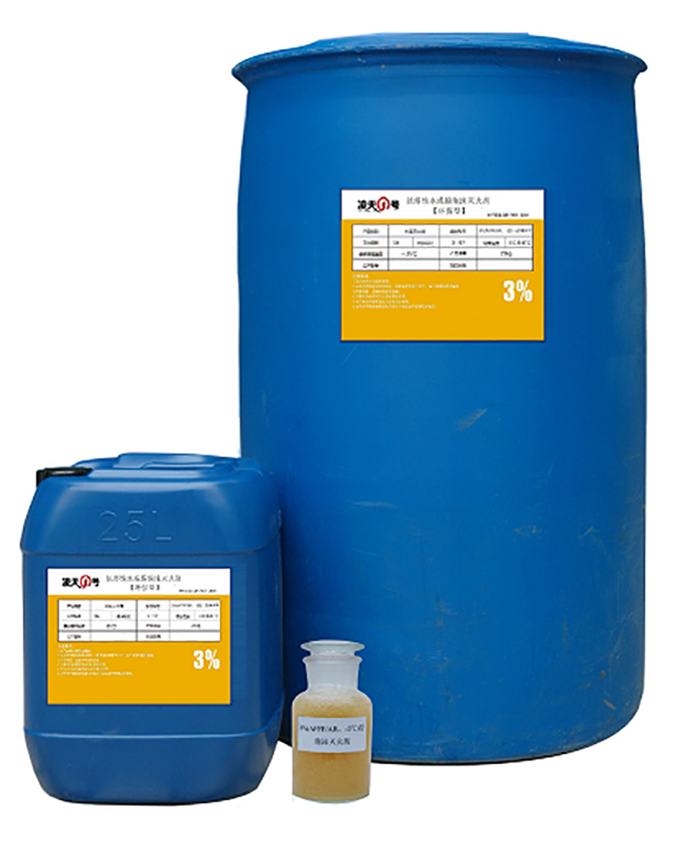 該滅火劑的各項性能指標符合GB15308-2006《水成膜泡沫滅火劑》的要求。按與水體積混合比分為3%AFFF (3: 97)和6%AFFF(6:94)兩種。該滅火劑通過比例混合經泡沫產生裝置可以均勻細膩的泡沫。該滅火劑是目前低倍數泡沫滅火劑中滅火效率最高、滅火速度最快的一-種滅火劑,它具有多種使用形式,可以適用于各種低倍數泡沫產生系統和泡沫滅火器中使用,經國家權威部門檢測對人體無毒無刺激,腐蝕性低,該滅火劑不但徹底解決了環境污染問題而且儲存期長等特點。