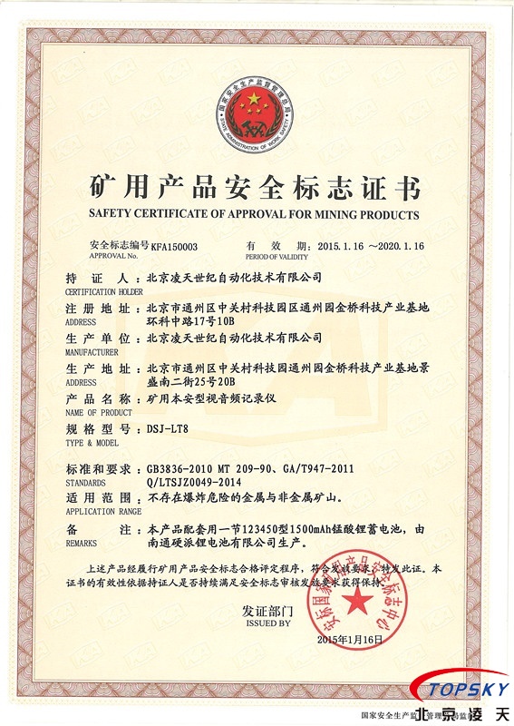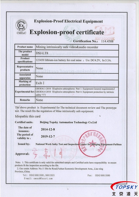 DSJ-LT8防爆執法記錄儀取得煤安認證