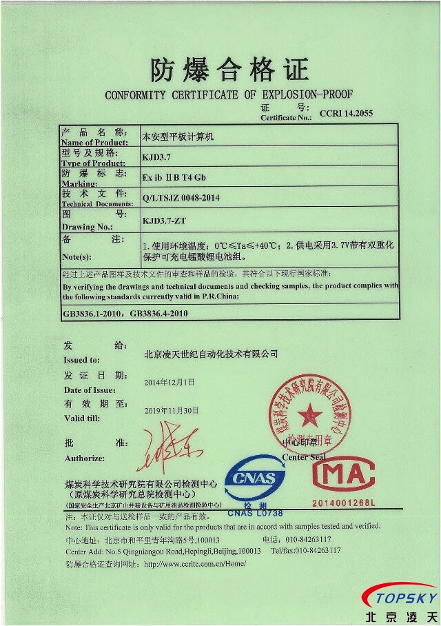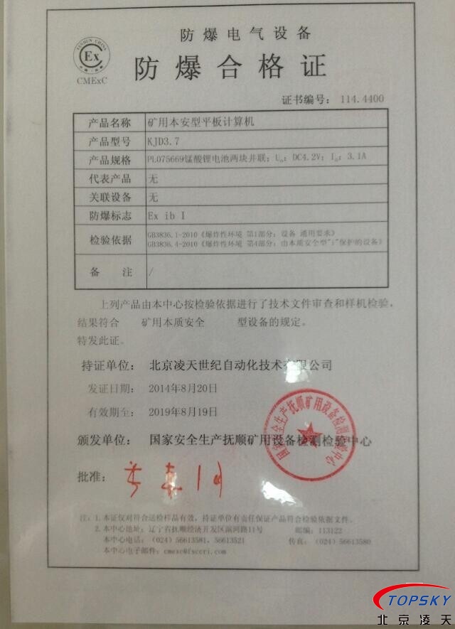 【云安通】KJD3.7防爆移動執(zhí)法終端(本安平板計(jì)算機(jī)) 技術(shù)完成單位:北京凌天世紀(jì)自動化技術(shù)有限公司 |