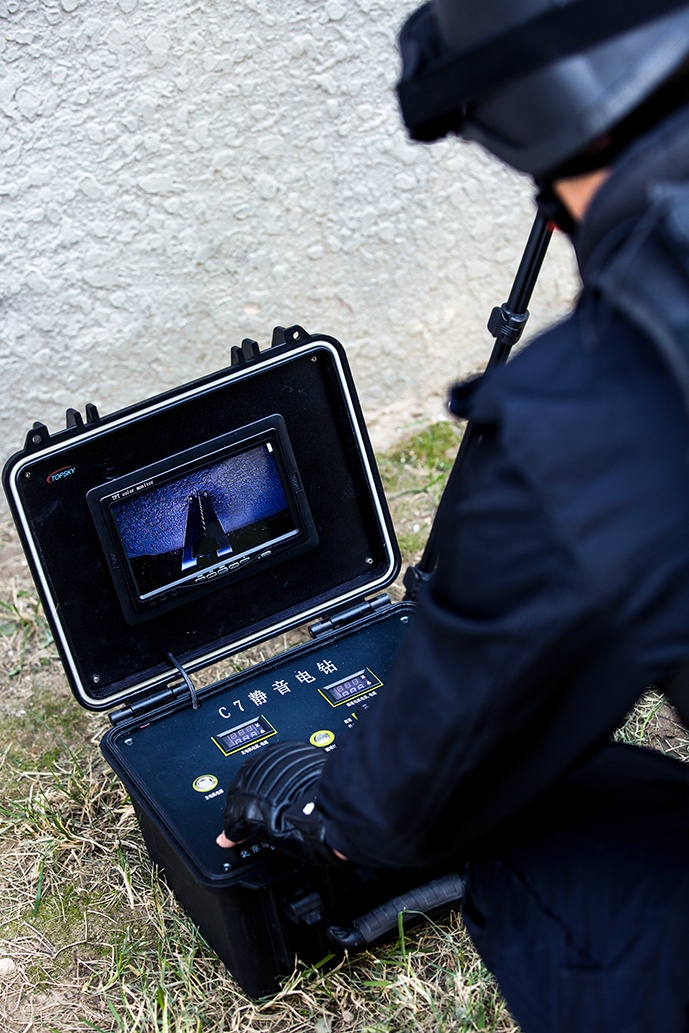 整套完整的系統裝在一個攜帶箱內,可以迅速安裝設置,操作簡便。在反恐行動中,對房間內部情況的了解至關重要。靜音電鉆可以在不被犯罪分子察覺的情況下在墻上鉆孔,然后伸入蛇眼探頭觀察房間內部狀況。