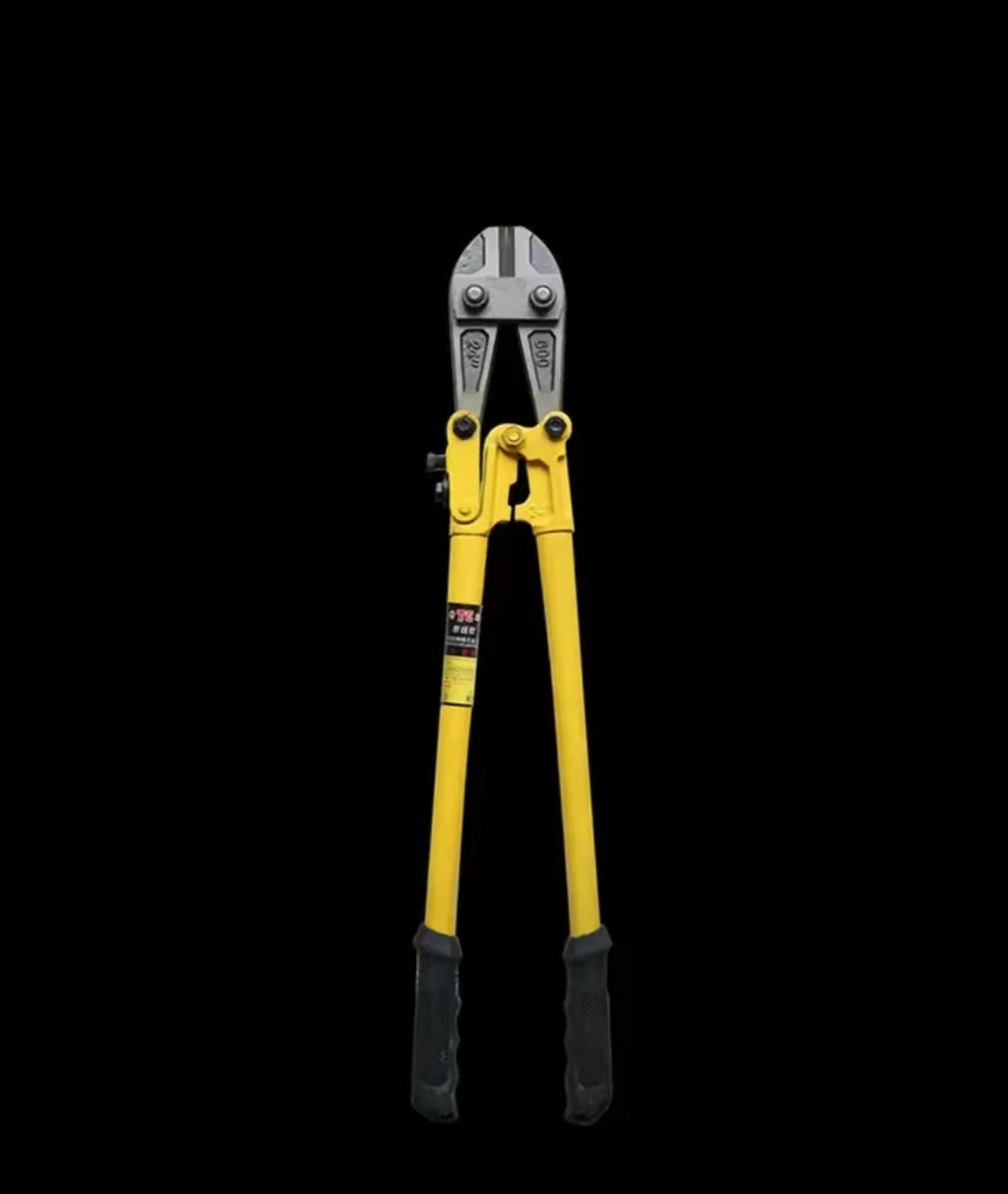 長度:800mm,開口尺寸20mm,重量2.5kg,剪切能力:切斷直徑10mm的圓鋼(Q235材質),鉗子的手柄處和延長桿為絕緣材質