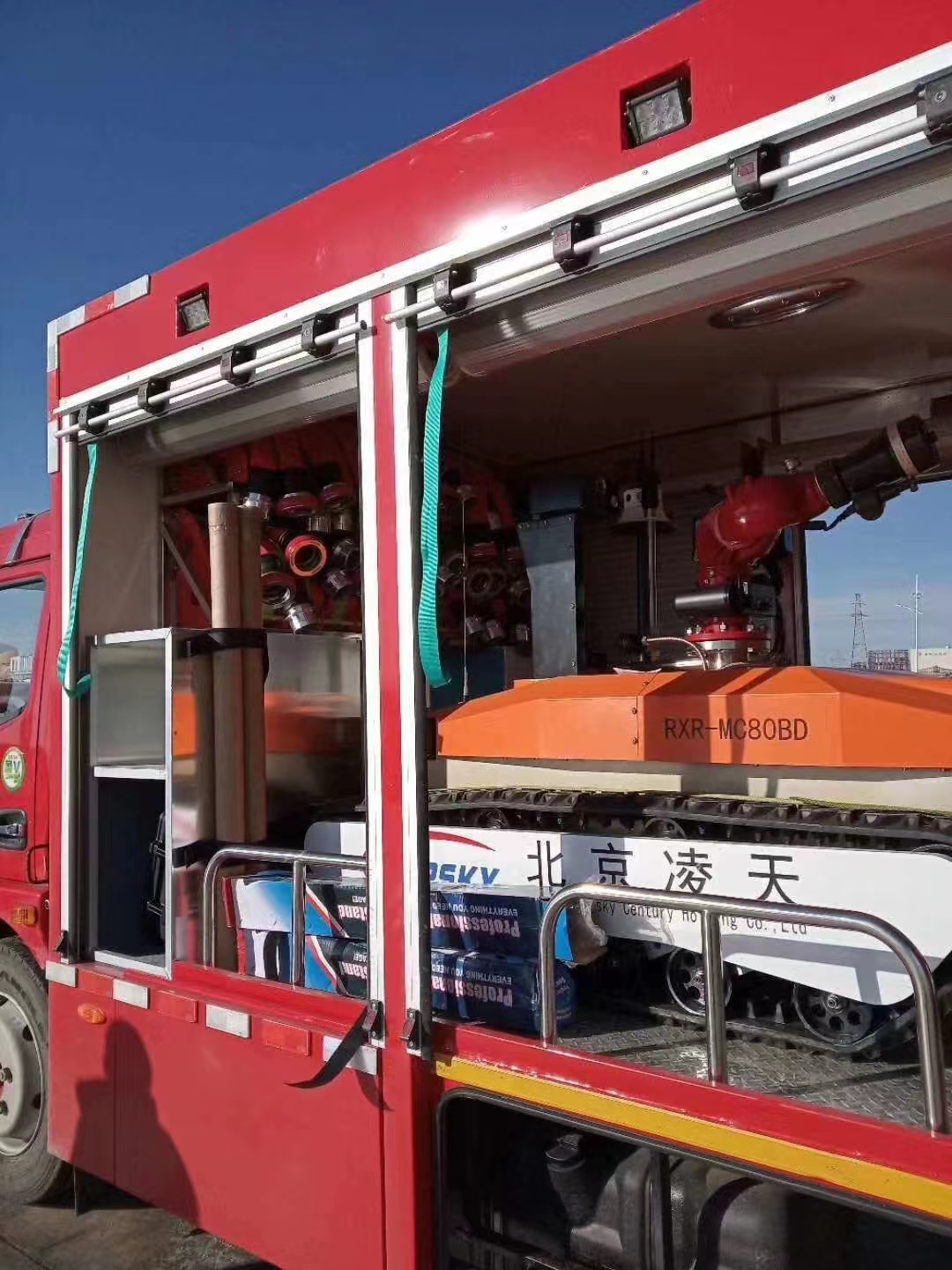 RXR-M80LGD消防滅火機器人采用鋰電池電源作為動力電源,救援人員可遠距離操控。本產品可適用于各種大型危險化學品、高層樓宇建筑、大跨度商業建筑、工廠、商貿企業、礦山、隧道、地鐵等事故救援,主要替代消防員在執行危險救援任務。本產品具備滅火、音視頻偵察、有毒有害氣體偵察、災區環境偵察功能;機器人采用前后4擺臂+履帶+4輪胎輪履底盤結構,輪履合一的設計可以將速度和越障能力都能得到保證;輪式結構可以大幅度提高機器人的行駛速度,保證了機器人的快速部署、快速投入救援;