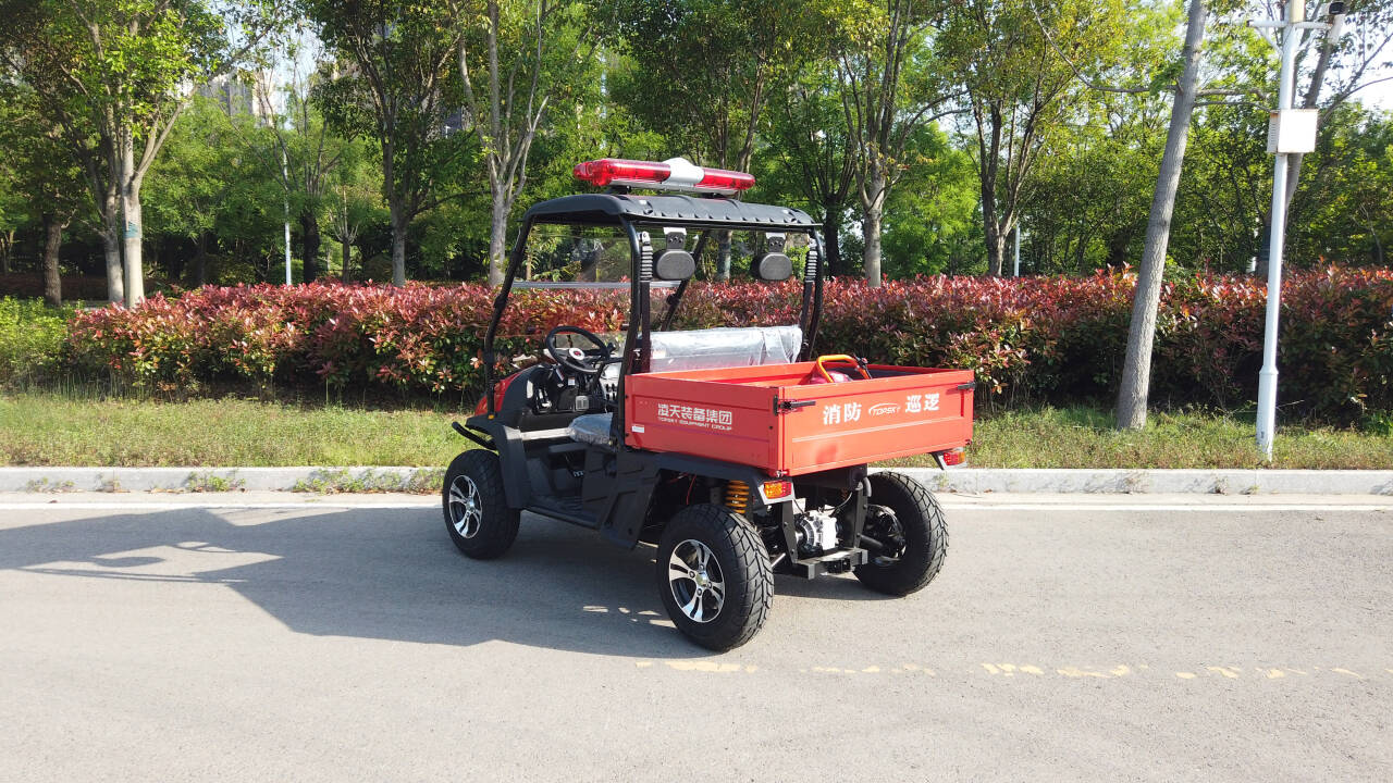 LT-400型消防摩托車具有超強的越野性能,無論是在崎嶇的山路還是在狹窄的街道,只要能讓車身進出的空間就能快速、靈活地進行滅火救援,突發火災險情時可搭載2人形成戰斗小組消滅火源。合理的器材布局能迅速從各個方向拿取滅火器材,干粉滅火器只要到達現場立即就能投入戰斗,手抬機動消防泵可迅速移動到消防栓、農田、糞坑、池塘獲取水源進行高效滅火,性能穩定可靠。同時配備有高壓細水霧裝置,能到達現場后,快速投入救援當中。車上可選配有消防水帶、消防栓扳手、直流水槍、消防大斧等設備,確保救援高效快捷。