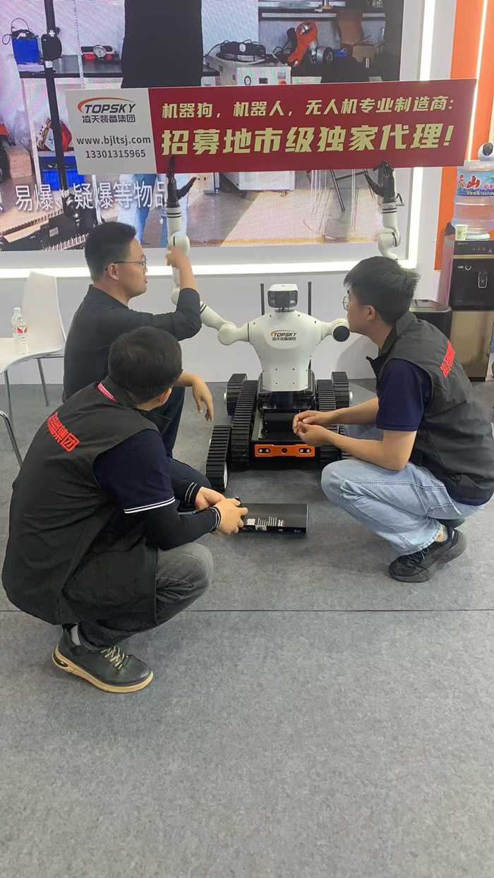 雙臂排爆機器人主要是用來處理爆炸物相關工作的排爆式機器人,也可用于偵察人難以達到的地形的一種機器人。同時該裝備采用擬人機械臂結構兼容人體姿態隨動,手持控制,便攜控制箱等多種人機交互操控方式,可實現雙臂協同靈巧操作、雙向語音通話、高清立體視頻及回傳反饋等功能。履帶式底盤,極大提升越障和爬坡能力,可適應沙地、瓦礫、草地等多重復雜地形。同時新增的腰部自由度擴大了機器人的工作空間,更加方便機器人處理地面和高處任務。能夠在非視距條件下,遠程操控機器人打開拉鏈包裹、消防栓、垃圾桶等可疑載體,檢查翻找危險品及自制炸彈;能夠攜帶并使用柔性防爆罐,在非視距條件下,遠程操控機器人完成從爆炸物抓取、轉移、放置于排爆罐內、關閉排爆罐的全流程作業。
