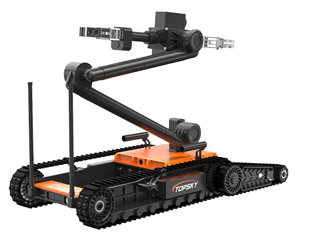 排爆機器人主要是用來處理爆炸物相關工作的排爆式機器人,也可用于偵察人難以達到的地形的一種機器人。7自由度排爆機械手能實現不同角度旋轉,近端最大可抓舉16KG的重物,小手爪可抓取3KG重物,機械臂可裝載爆炸物銷毀器,可現場摧毀爆炸物,底盤采用履帶+單擺臂結構,能適應各種地形快速作戰部署。同時機器人配備有線控制可以網絡干擾情況下通過有線遠距離作業。排爆機器人可與配件一同使用,包括銷毀器(例如29mm),爆炸物的遠程引爆控制系統等。