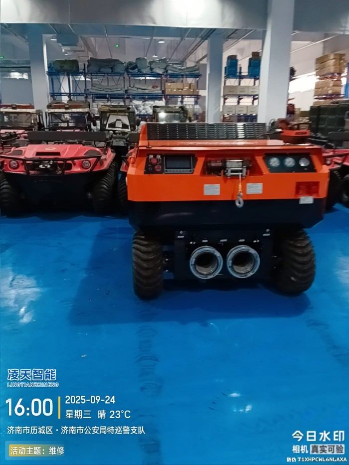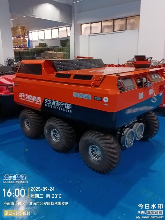 水陸兩棲 采用6×6輪式底盤,液壓驅動,水陸兩棲,可全地形行駛。可在水上漂浮行進,適合多種救援場景。