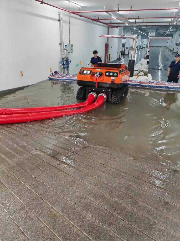履帶式消防應急供排水機器人防汛水泵是集柴油機、動力站、液壓潛水泵、履帶機器人、遙控控制系統、液壓動力系統為一個整體、使其能運用與一些特殊的工況環境使用,例如底下車庫、依然易爆環境、無電源無動力的環境需要臨時大流量排水時用該系列履帶式消防排水機器人效果明顯。