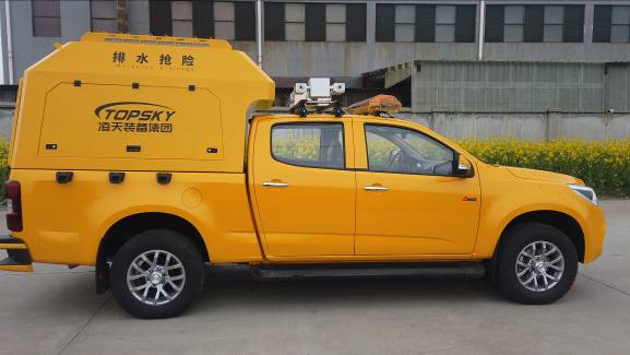 救險車(皮卡排澇車),具有大流量排水搶險功能,采用多功能貨車(皮卡)整車為運輸載體,搭載模塊化的分體/整體式鋁合金廂體,可與運輸車輛分離,獨立進行供排水作業,廂體內部安裝有柴油發電機組、移動排水泵、電控系統及安全防護裝置。可用于地下車庫、隧道、涵洞、城市狹小道路、居民小區等環境的排澇救援,城市內澇災害,可實現對積水的快速排洪救援;可為農田進行抽水灌溉,進行抗旱救災;以及火災撲救時遠程供水的取水模塊。該模塊除排水抗澇外,可為外部裝置實施供電,為作業時場地實施夜間照明,以及可選裝100kg起吊,前部安裝有2t牽引絞盤進行自救,還可選裝高清云臺遠程監控,對作業區域實施無人化管理。
