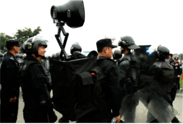 背負式聲波驅散器是包含獨立電源、攻放、揚聲器、話筒等的獨立擴音系統,采用蓄電池直流供電,DC-DC轉換,選用YH29-2M戶外防水揚聲器,強指向、高聲壓、高清晰、耐沖擊、傳聲距離遠、可達1.5KM