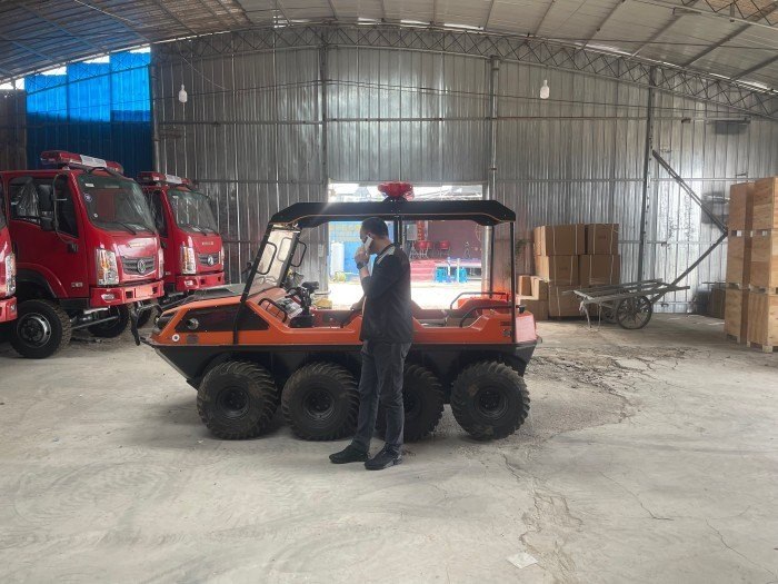 當(dāng)火災(zāi)出現(xiàn)時,在復(fù)雜地形和環(huán)境下,沒有時間等待重型救援裝備能順利及時到達現(xiàn)場。水陸兩棲全地形車可立刻準(zhǔn)備好,部署消防人員,使用車上搭載的噴霧和泡沫設(shè)備在現(xiàn)場抑制火源。配備同樣的裝備來保護火災(zāi)易發(fā)地區(qū),風(fēng)險防范于未然。