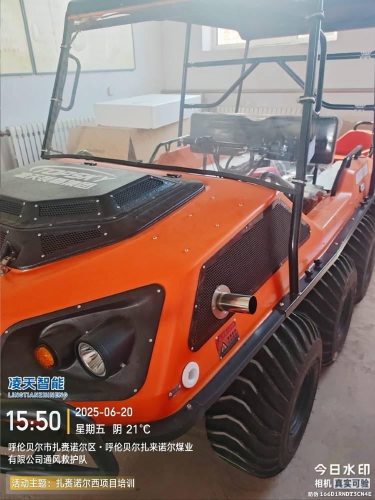 以完成可靠的野外應(yīng)急救援為目的,該水陸兩棲全地形車可提供一種安全的運輸方式和可靠的運載平臺,產(chǎn)品可以在山地環(huán)境、濕地環(huán)境、沼澤環(huán)境、水面環(huán)境、叢林環(huán)境等多種工作環(huán)境下,實現(xiàn)全天候連續(xù)作業(yè)。并且可以在災(zāi)害現(xiàn)場巡邏勘察、運送受傷人員、并有效實施援救。