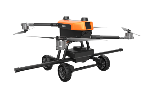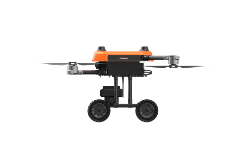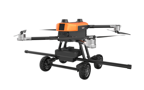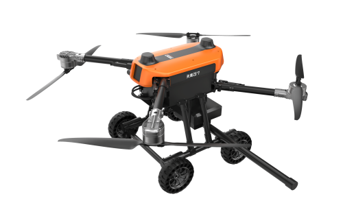 本無人機(jī)為北京凌天智能裝備集團(tuán)研發(fā)的陸空兩棲航磁探測無人機(jī),采用四旋翼機(jī)身設(shè)計(jì),載重大,續(xù)航長,并且機(jī)體折疊標(biāo)準(zhǔn)化負(fù)載接口。同時(shí),該無人機(jī)具備陸空兩棲功能,可以在地面行駛,行走系統(tǒng)可快拆。