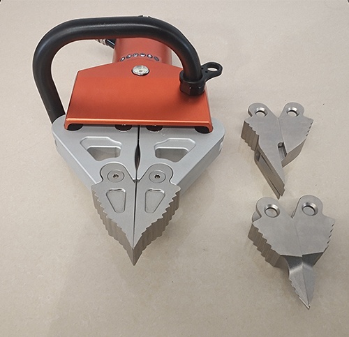 7.標(biāo)配開門開縫、撕裂兩套多功能工具頭,可根據(jù)實(shí)際救援情況隨意更換。開縫最小插入間隙為2mm,撕裂工具頭可手動戳穿3mm的Q235A金屬板。