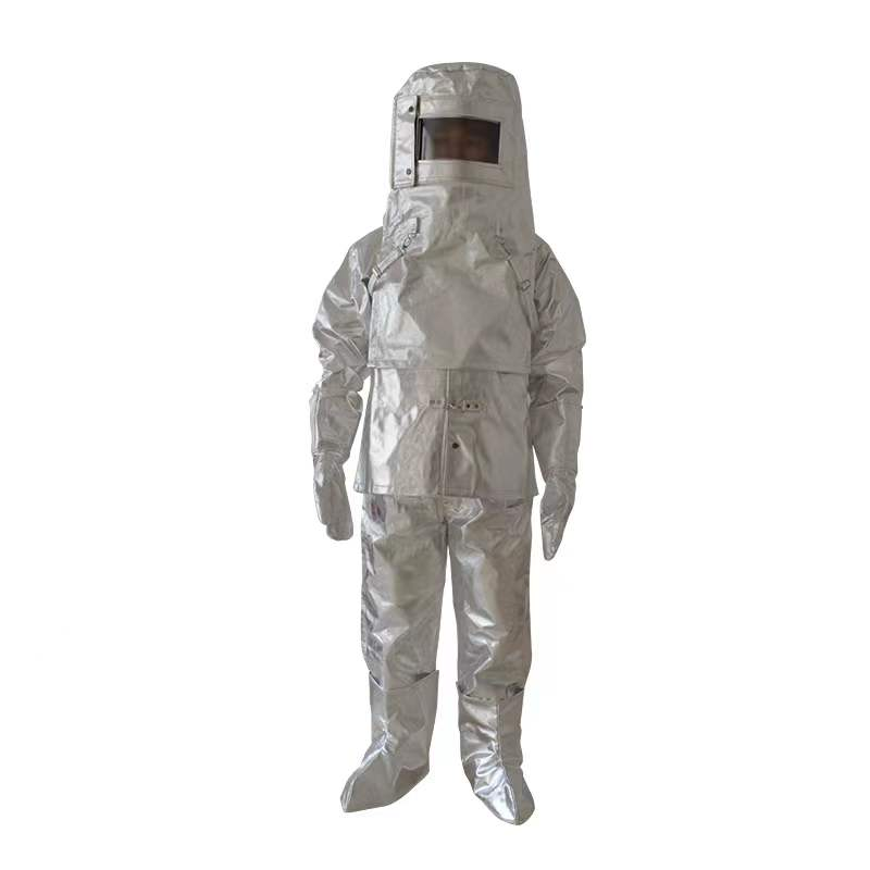該服裝由鋁箔耐高溫隔熱布、阻燃隔熱:層及舒適層組成,具有耐磨、隔熱、抗輻射熱等性能。基布面料不含石棉、玻璃纖維,具有重量輕、耐高溫、耐折以及對(duì)人體無(wú)毒害等優(yōu)點(diǎn),能有效地保障消防隊(duì)員和高溫作業(yè)人員不被烈焰、高溫灼傷。是消防隊(duì)員在火場(chǎng)及高溫事故現(xiàn)場(chǎng)進(jìn)行搶險(xiǎn)作業(yè)的理想防護(hù)服裝。