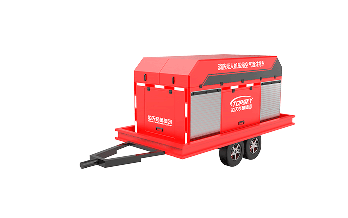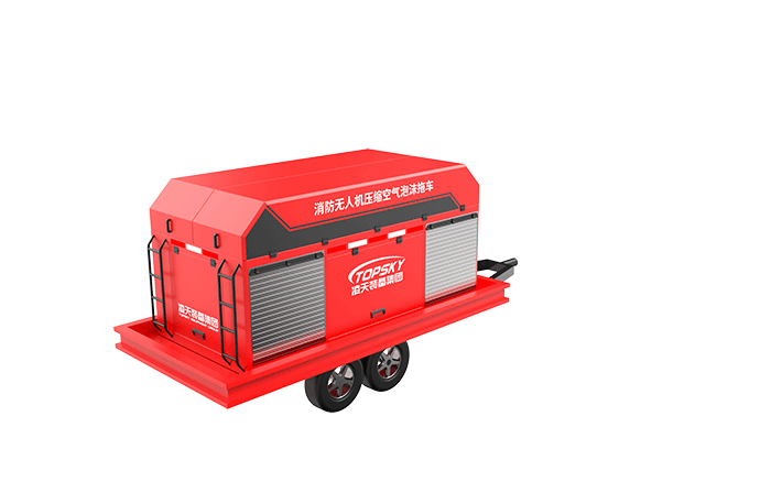消防無人機壓縮空氣泡沫拖車,采用中置軸掛車為運載平臺,搭載我司自主研發的水帶系留式重型消防滅火無人機和壓縮空氣泡沫系統(CAFS),自帶水和泡沫滅火劑,具備高效滅火(高效泡沫隔離、冷卻、窒息)、高空破窗,自動避障、展開快速、精準鎖定火源、多角度控制火點、空中作戰時間長等特點。機身采用純碳纖維和航空鋁材料制作而成,減輕機身自重同時提高物質載重量,該無人機具備陸空兩棲功能,可以在地面行駛,行走系統可快拆;可噴射水及壓縮空氣泡沫,使用超輕型浮力水帶噴射的壓縮空氣泡沫密度更輕,可以能快速啟動升空,拖帶水帶升至高空,系統操作穩定性更強。