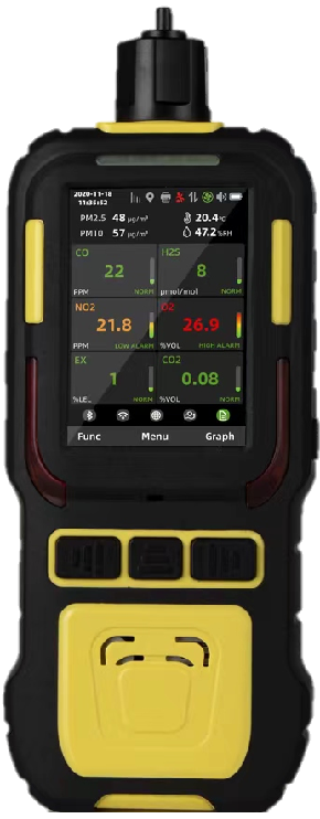 無線復(fù)合氣體探測儀(以下簡稱探測儀)支持二十多種智能氣體傳感器,可同時連續(xù)檢測5種氣體的濃度(氣體種類可自由組合系統(tǒng)智能識別)、粉塵濃度(PM2.5、PM10)、核輻射、溫濕度。將采集到的氣體數(shù)據(jù)、GPS位置、粉塵濃度、核輻射、溫濕度等數(shù)據(jù)通過4G上傳至監(jiān)管后臺實現(xiàn)無線管理;探測儀也可以實現(xiàn)現(xiàn)場實時數(shù)據(jù)一鍵打印功能。探測儀具有氣體濃度調(diào)校標定、濃度值超限報警功能、STEL超限報警和TWA超限報警,一旦設(shè)備采集數(shù)據(jù)濃度值超限,設(shè)備立即開啟聲光振動報警進行警示,并將此時數(shù)據(jù)同步上傳至平臺。可將多臺探測儀的監(jiān)測、監(jiān)控信息上傳,并建立特殊作業(yè)場所多功能監(jiān)測監(jiān)控系統(tǒng)平臺,保障作業(yè)人員的安全。采用新一代主流外觀設(shè)計,美觀耐用。