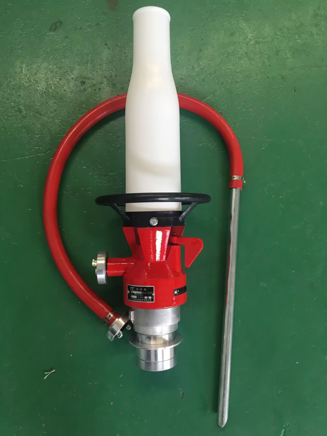 符合執行標準GB25202-2010。空氣泡沫槍是產生和噴射空氣泡沫的設備,是一種輕便的消防器材,它的管牙接口與水帶接口相接,供水和泡沫液混合后可用來產生和噴射空氣泡沫,撲救中型油類火災。