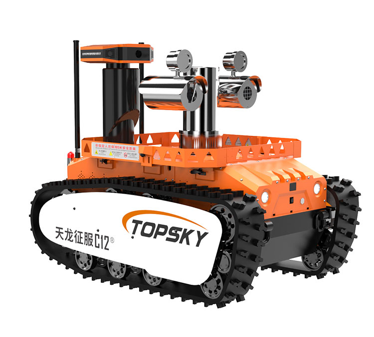 主要功能:履帶式防爆機(jī)器人底盤采用鋰電池電源作為動(dòng)力源,使用無(wú)線遙控的方式遠(yuǎn)距離操控,可搭載形式多樣,原地旋轉(zhuǎn)設(shè)計(jì)可使得運(yùn)更靈活;具備音視頻偵察、有毒有害氣體偵察、災(zāi)區(qū)環(huán)境偵察功能,對(duì)提高救援安全性、減少人員傷亡具有重要意義。